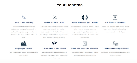 My design approach for the Urban Furnished website directly addresses both user and business goals. By aligning content strategy and visual elements, I aimed to simplify navigation, make critical information more accessible, and clearly convey the benefits of booking directly.