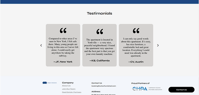 Urban Furnish is a property rental company based in New York, offering fully furnished apartments. Their properties are listed on popular platforms like Airbnb, Blueground, and Vrbo, but they also maintain their own website where customers can book directly.